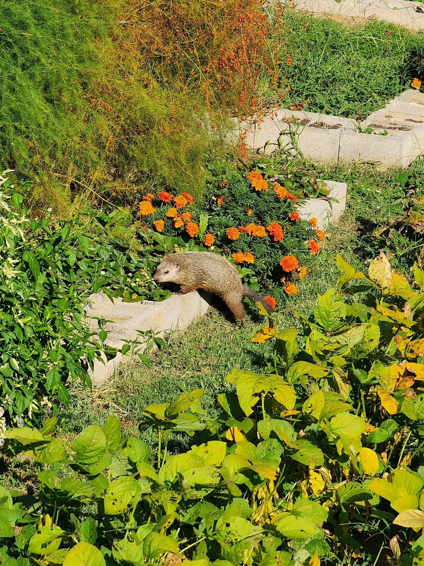 East Clyde (our groundhog friend) made regular appearances, munching on strawberries and green beans. Praying mantises lounged in the asparagus fronds. The marigolds bloomed orange, yellow, and red all over the garden—prolific and unstoppable.