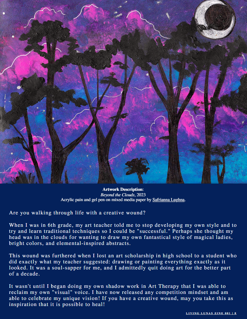 Your work will be featured in an upcoming issue of the Living LUNA Zine.